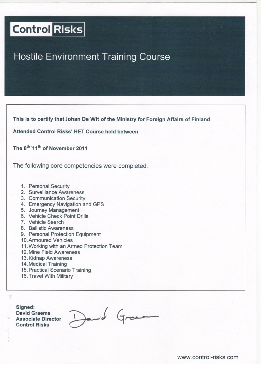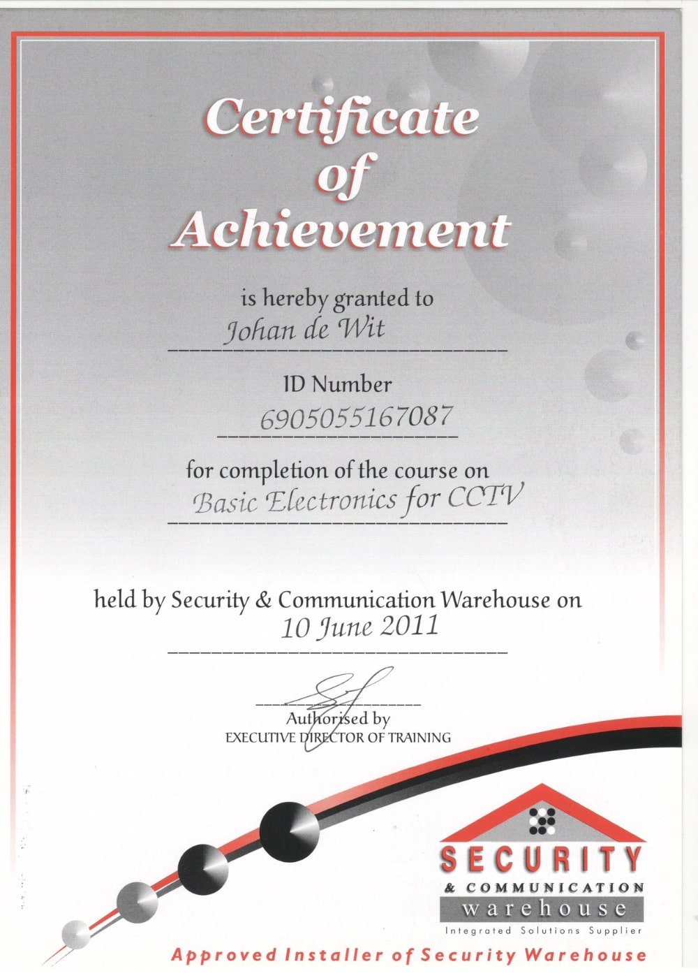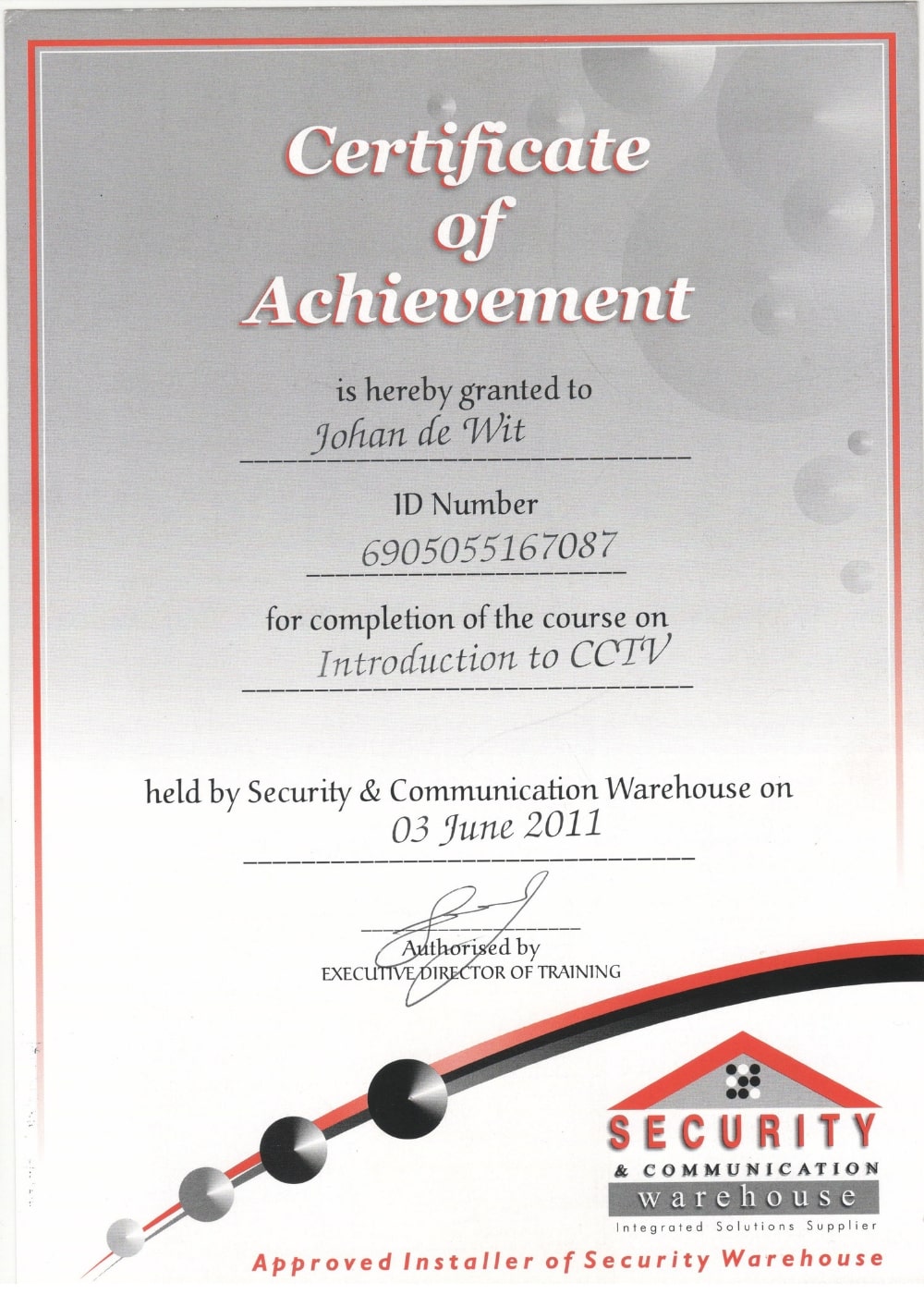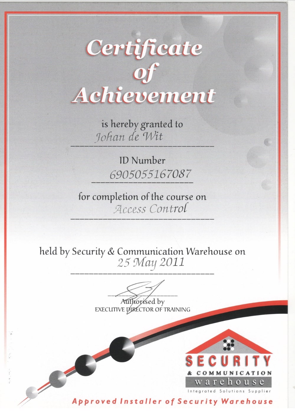 Below are some of the accreditation certificates acquired over time – some of them relating to security systems, and some of them relating to other security training. Please click on any of the scanned pictures to view a larger version: